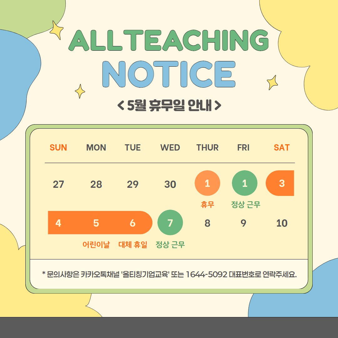 [올티칭 기업교육] 5월 휴무 안내